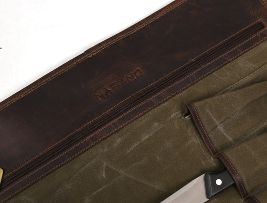Étui à couteaux de chef en toile cirée vert - 5 fentes